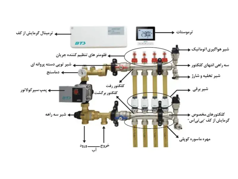 ست کامل تجهیزات گرمایش از کف و شیر برقی بی تی اس